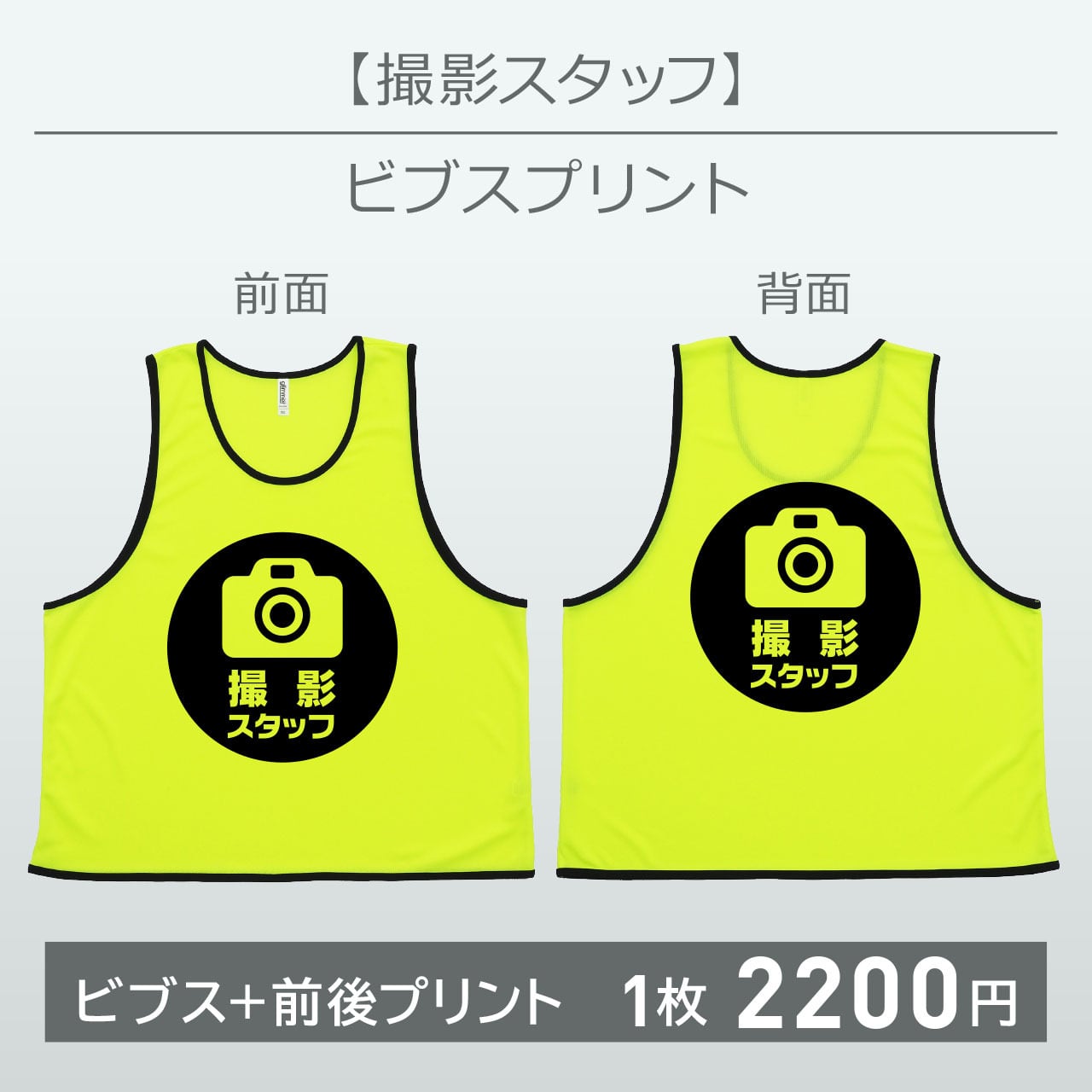 glimmer(グリマー)のビブス(蛍光イエロー)に、「撮影スタッフ」のデザインプリントが入っています。